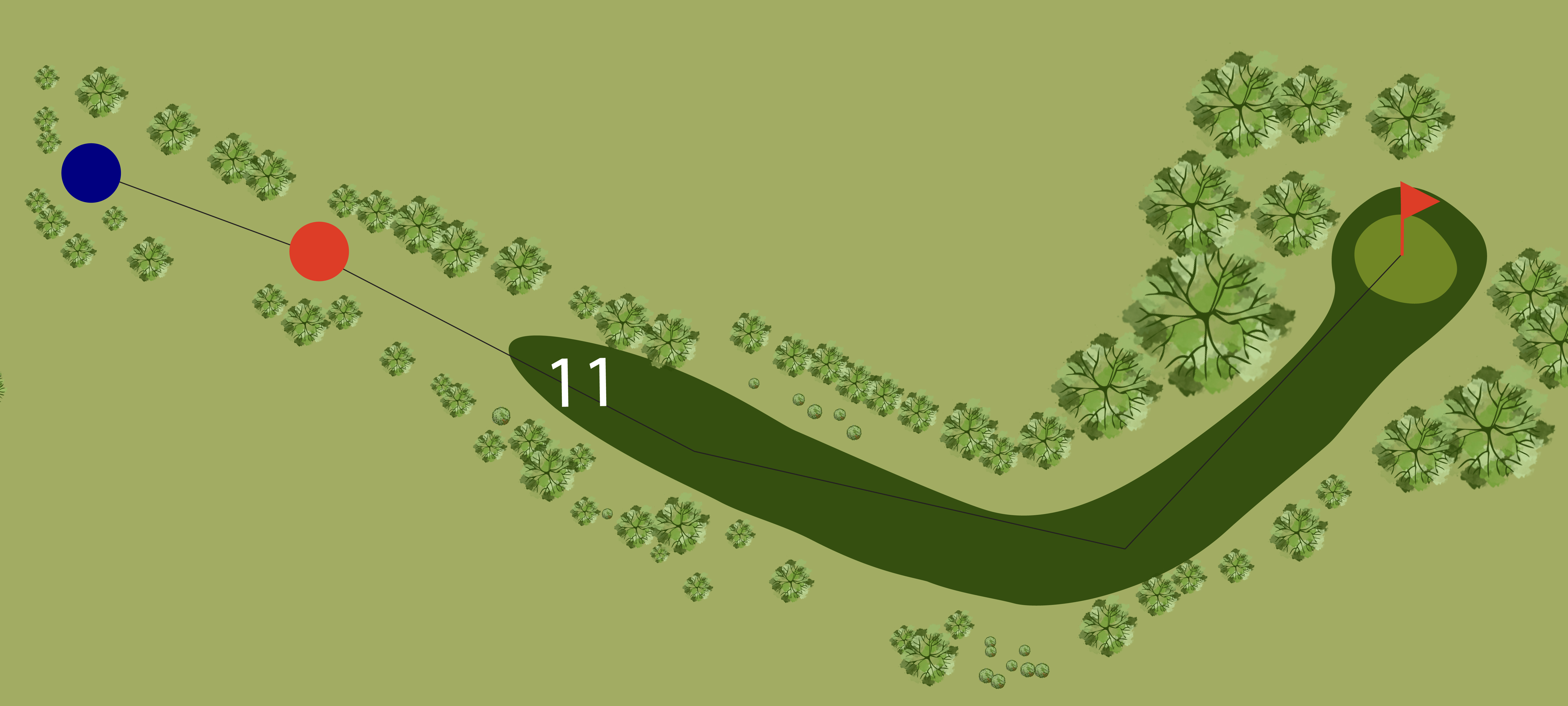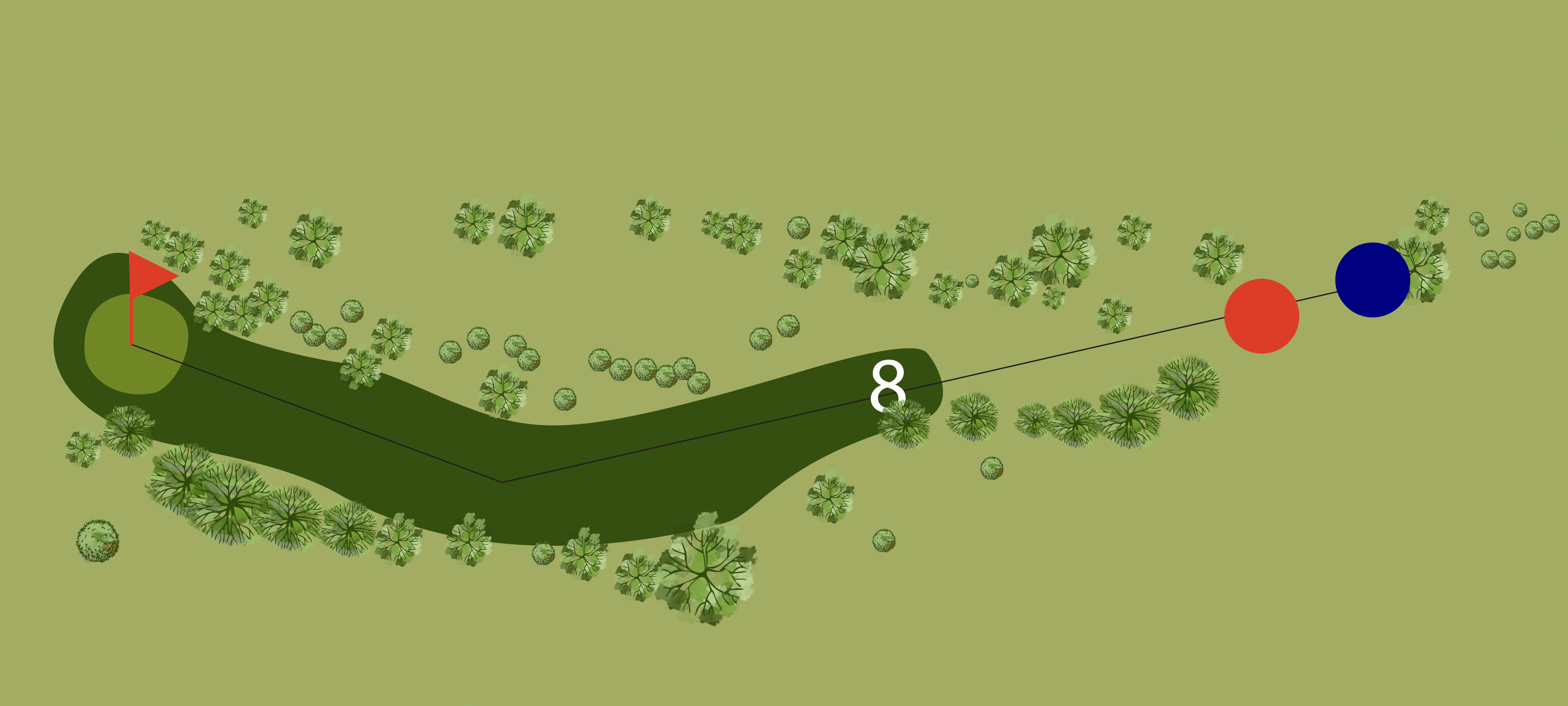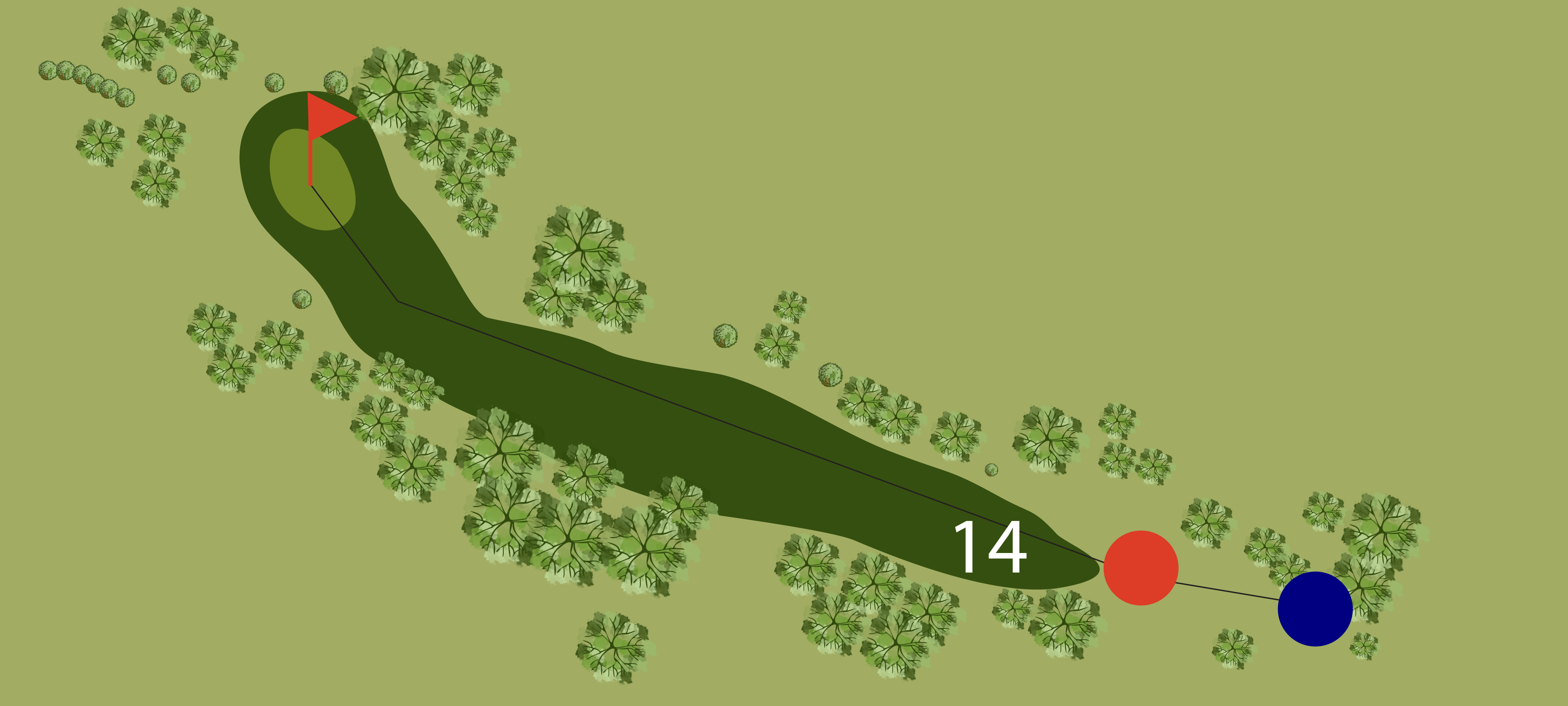 Dogleg to the left. Avoid the trees and grass hollows on the left, to reach a green that slopes to the right. |