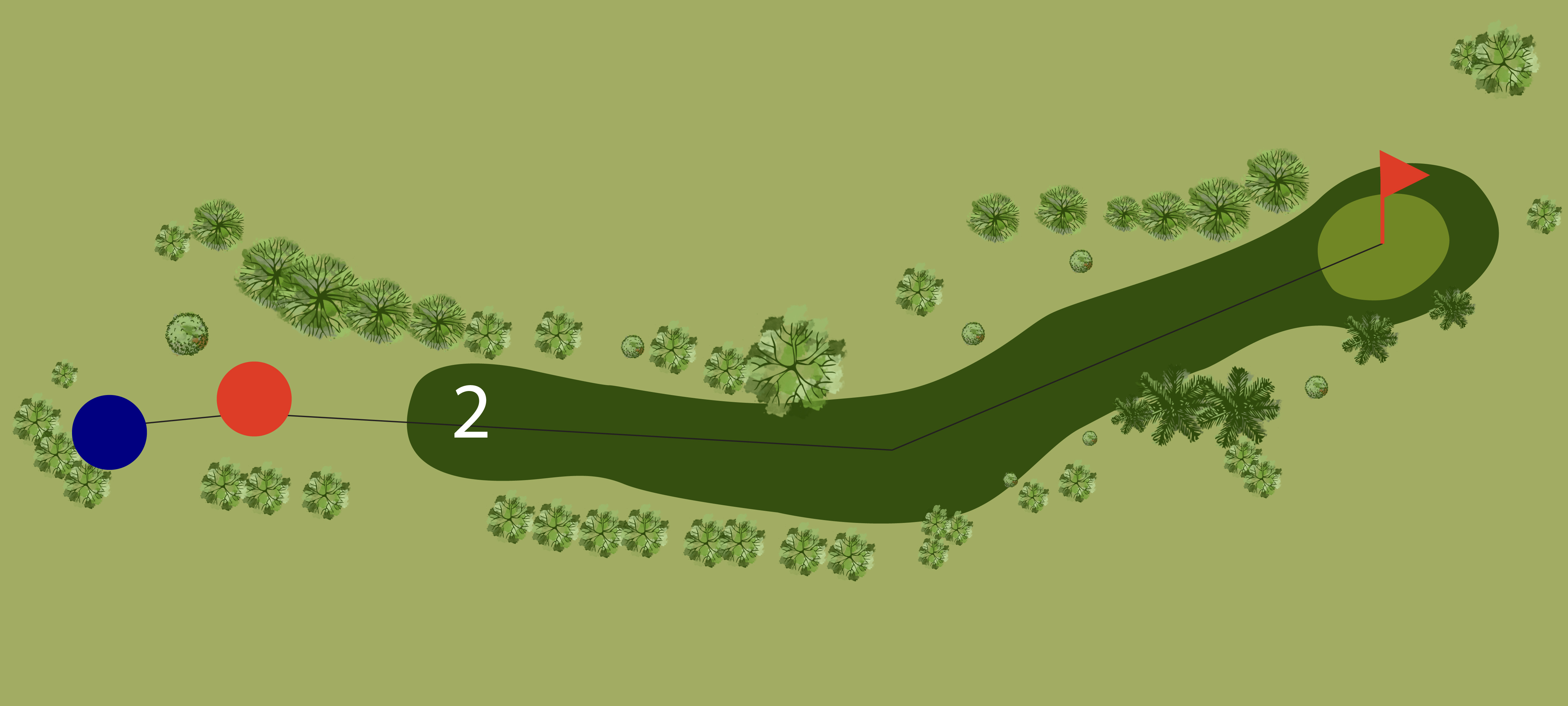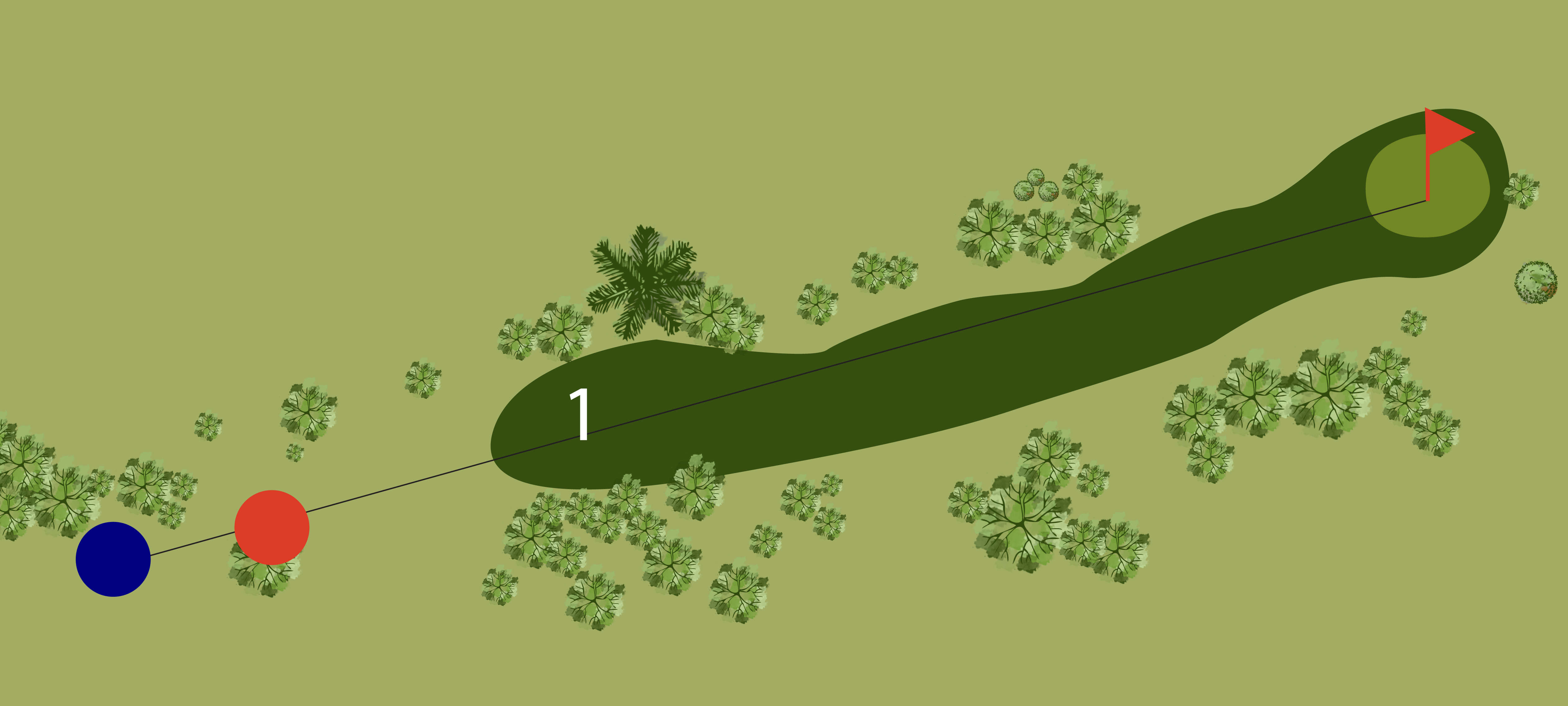 The opening hole has a slight dogleg to the left. Second shot into a large gently sloping green. |