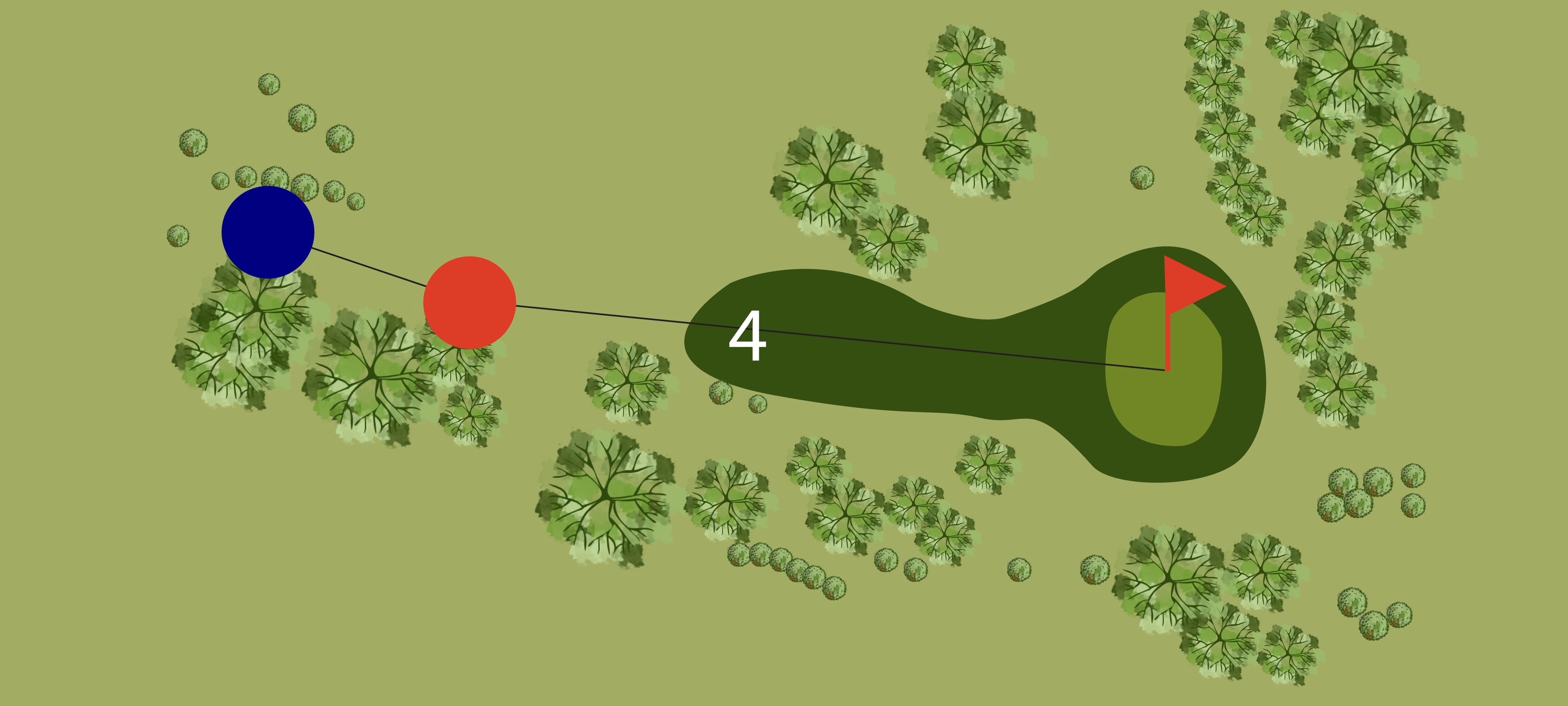 Dogleg to the right. Thread the second shot between large grassy mounds to reach a large undulating putting surface. |